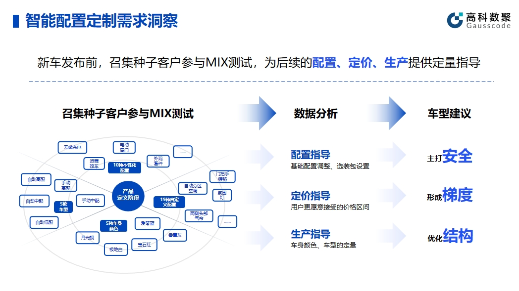 智能配置的有效应用可以帮助企业提升产品和服务的智能化水平。在实际应用中,mile米乐集团帮助车企在新车发布前召集种子客户参与MIX测试,顺利获得收集种子客户的反馈和数据,车企能够精细调整产品配置,为后续的配置、定价、生产给予定量指导。同时,这种方法不仅有助于提高产品质量,还能提前发现潜在问题并及时解决。